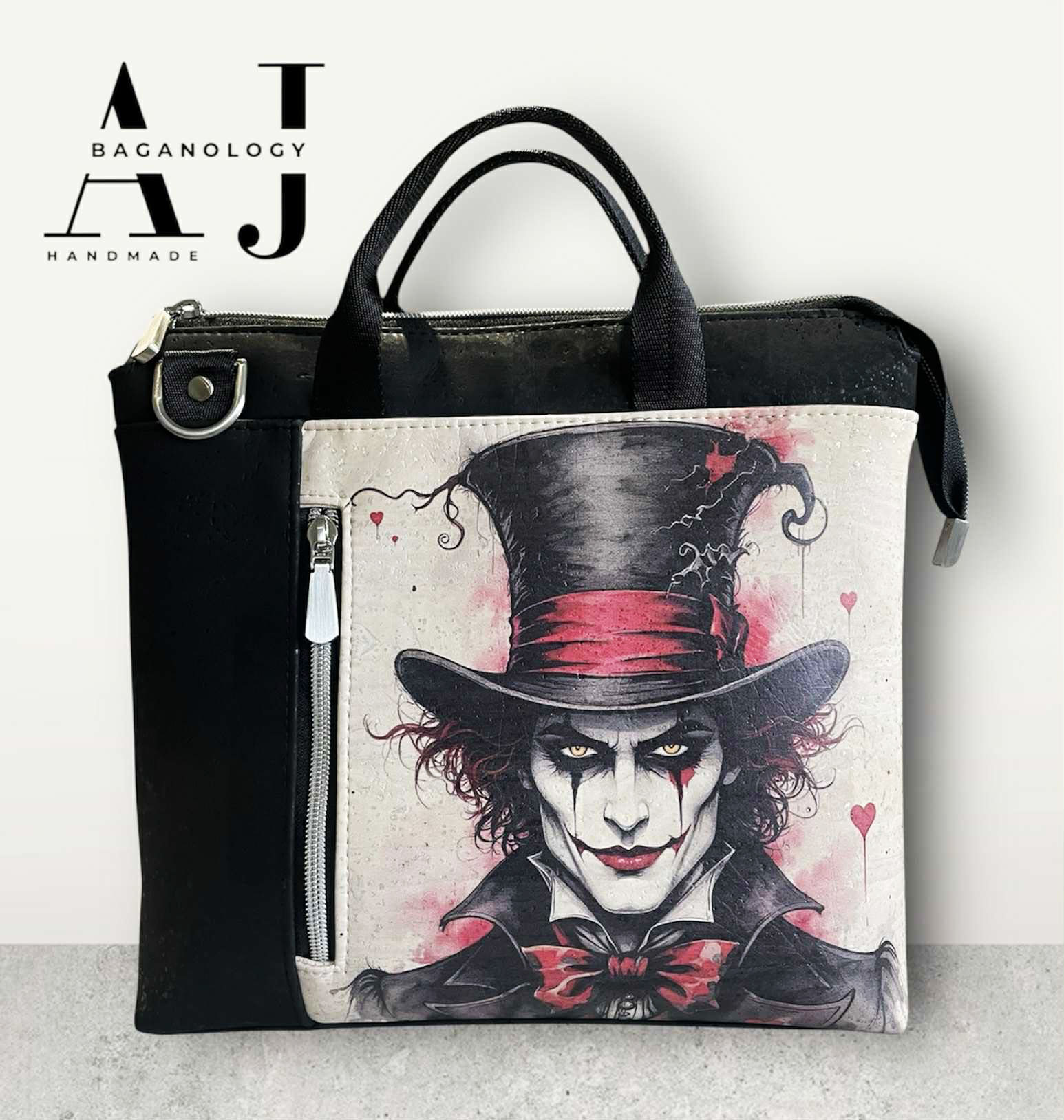 Bold, eccentric, and unforgettable — this red and black Mad Hatter cork fabric panel brings gothic drama and Wonderland madness to your projects. Perfect for statement bags or darkly whimsical creations.