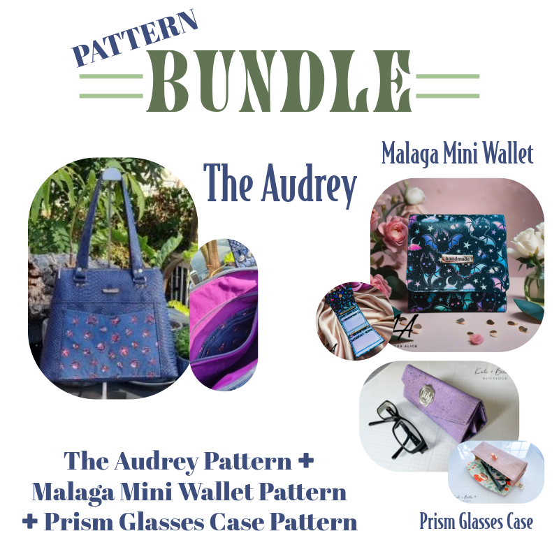 This pattern bundle includes The Audrey pattern, Prism Glasses Case pattern & Malaga Mini Wallet pattern.