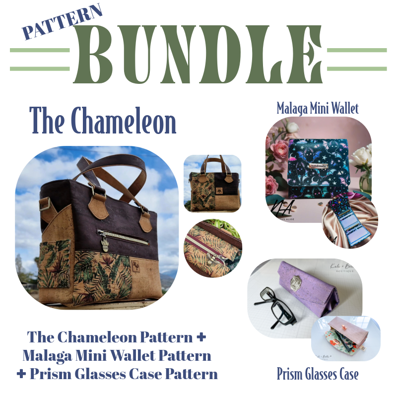 This pattern bundle includes The Chameleon pattern, Prism Glasses Case pattern & Malaga Mini Wallet pattern.